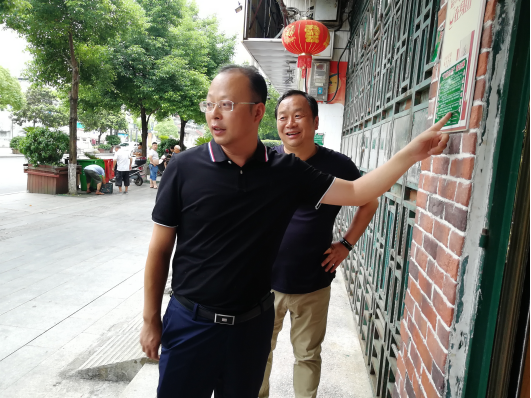 图为刘勇会(前)在了解门前三包制落实情况